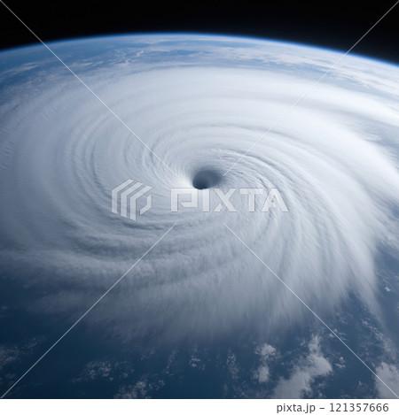宇宙から見た台風のイメージ AI生成画像