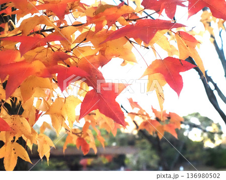 初冬の日差しを浴びたカエデ(色とりどりの台湾楓の木)