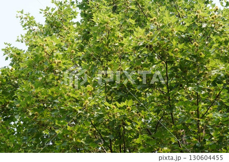 青空と日ざしを浴びたタイワンフウ(葉っぱをつけた台湾楓の一枝)