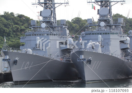 横須賀基地に停泊する護衛艦むらさめと護衛艦おおなみ