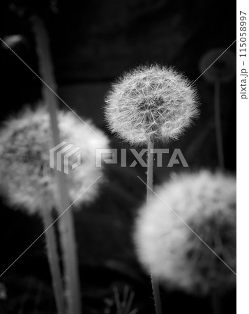 タンポポの綿毛をモノクロで。