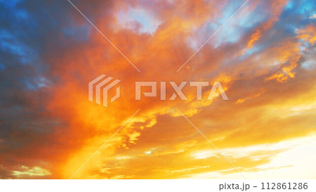 残夏の空、夕暮れ時、雲と光のクローズアップ撮影