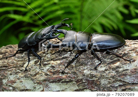 国産オオクワガタ同士の森の樹木の上での戦い