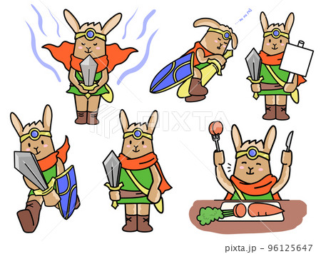 パワーの満ち足りた勇者の姿の兎のイラスト RPGゲーム風