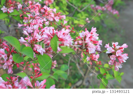 葉が斑入りの谷空木・紅空木(タニウツギ・ベニウツギ)の花枝の資料
