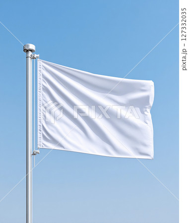 White flag for mockup waving against blue sky background on a bright day representing surrender or truce