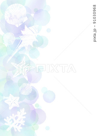 水彩円と貝殻のシルエット