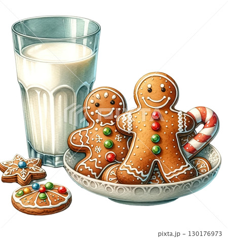 Gingerbread cookies with milk on a festive plate, perfect for holiday treats.