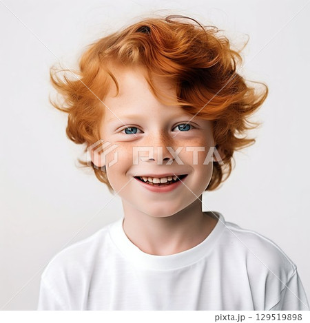 Joyful Youth: Smiling Ginger Boy Captured on White Background. Generative ai