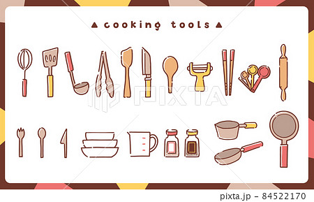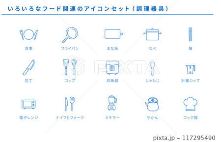 いろいろなフード関連のアイコンセット素材(調理器具)、ベクター