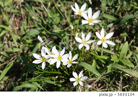 公園にタマスダレの白い花が咲いています。学名はZephyranthes candidaです。