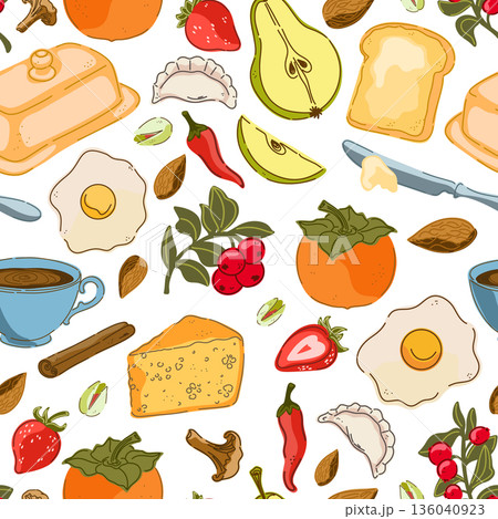 seamless pattern with bread, cheese, bread and spices