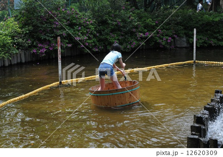 たらい舟で遊ぶ子供