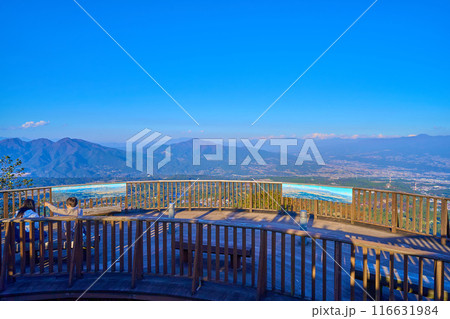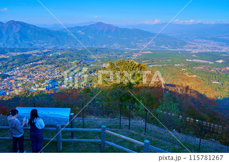 秋の群馬県渋川市伊香保町の上ノ山公園のときめきデッキ(展望台)から北側の眺望