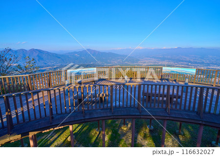 秋の群馬県渋川市伊香保町の上ノ山公園のときめきデッキ(展望台)から東側の眺望