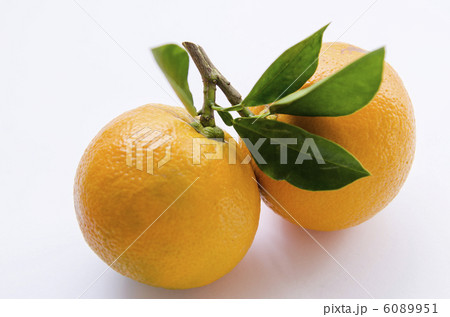 橙 だいだい ダイダイ 枝付き 葉付き 笊 白背景