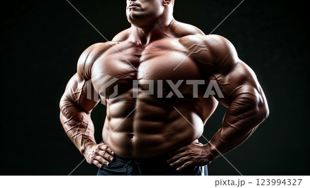 強いポーズを取るアスリート体型の大きなボディビルダー