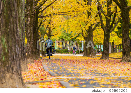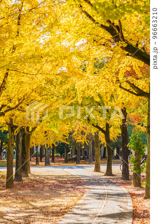 秋の千種公園、黄葉するイチョウ〈愛知県名古屋市〉
