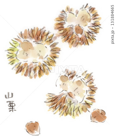 秋の植物。ヤマグリのイガの水彩画イラスト