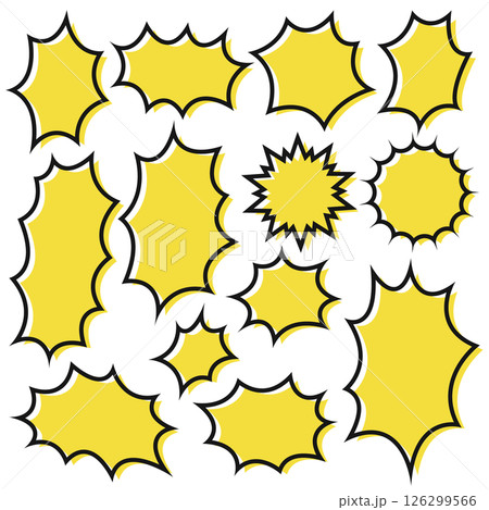トゲトゲした吹き出しセット 漫画 装飾 爆発 破裂 驚き 強調 イエロー