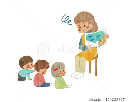 絵本の読み聞かせ中に集中力が散漫になる子どもたち-ガッシュ