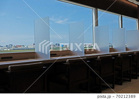 アクリルパーテーション(仕切り板)で飛沫を防止【コロナ感染対策のベクターイラスト素材】