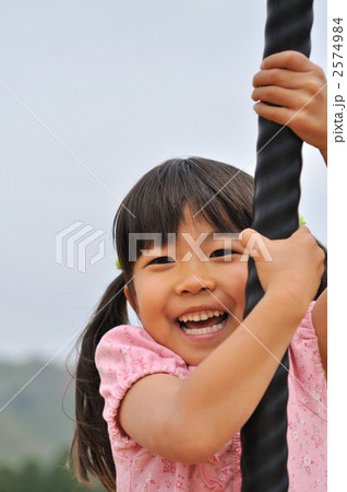 ザイルクライミングで遊ぶ女の子
