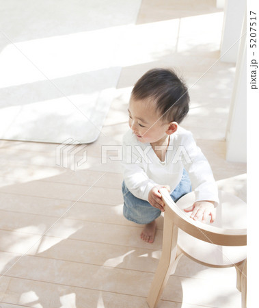 イスにつかまり立ちをする赤ちゃん