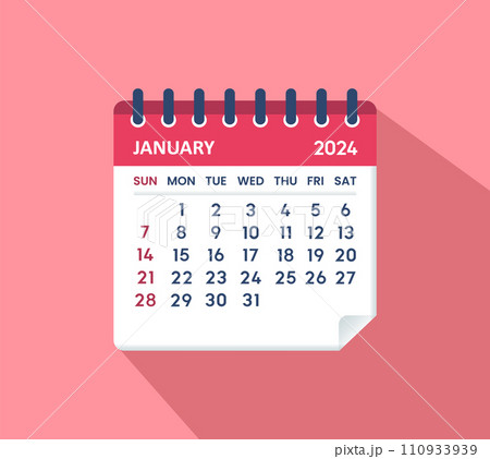 January 2024 Calendar Leaf. Calendar 2024 in flat style