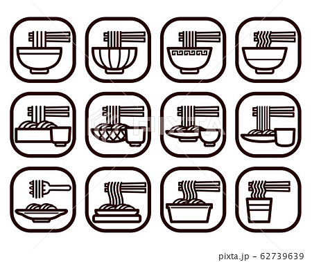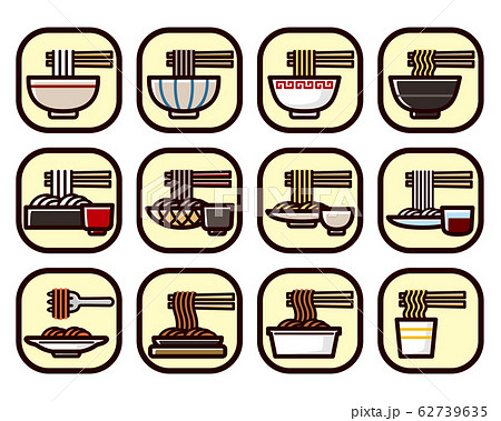 麺類の人気メニューイラスト①(そば、うどん、ラーメン、パスタ)