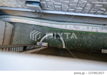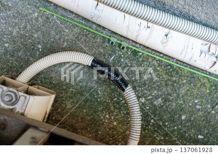 エアコン室外機のドレンホースが劣化していたので切断して新品と繋ぎ合わせた