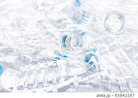 ゴミネットに入った回収予定のペットボトル 写真素材