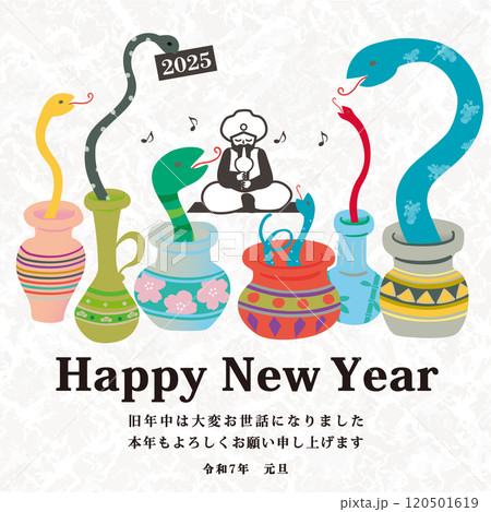 【メール用_LINE用_スマホ用_携帯電話用】年賀状 蛇つかい