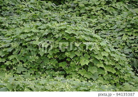 自然の蔦の葉っぱが生い茂る緑のカーテ