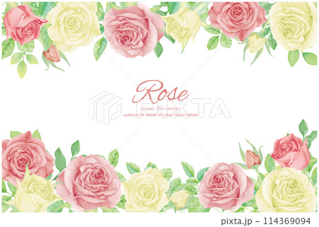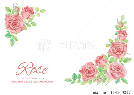 水彩で描いたバラのフレーム背景素材