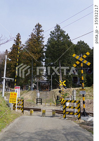 信州 上伊那 辰野町の神社 手長神社 参道と飯田線の踏切 本殿は町文化財指定 戦国時代の城址に祀る