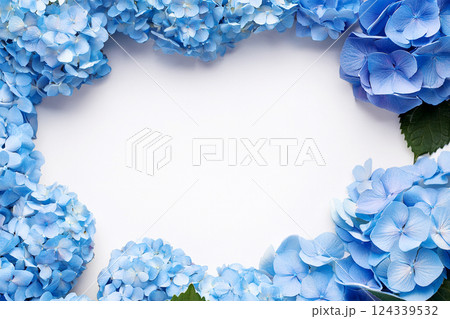 白い背景にあじさいのフレーム(ブルー系)