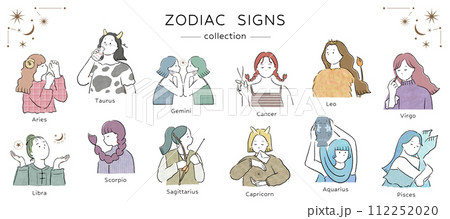 Zodiac constellation signs. Astrological symbols. Illustrations of horoscope. Magic female