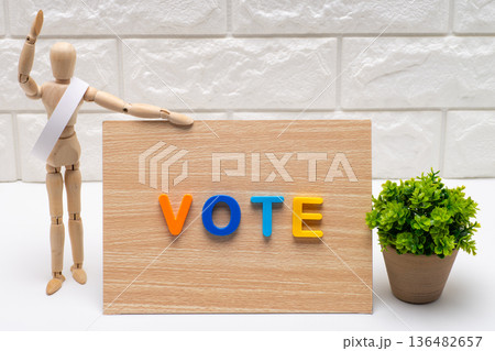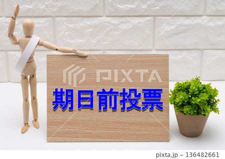 タスキを掛けた選挙の候補者と期日前投票の文字