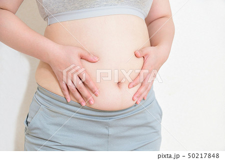 ぽっこりお腹の女性(脱力)