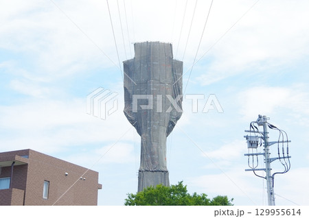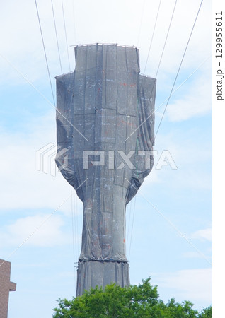 カバーをされた送電線の鉄塔