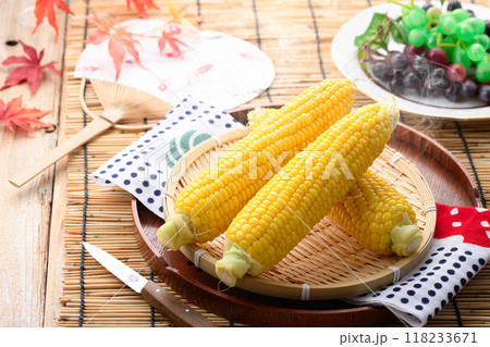 皮付きとうもろこしの盛り付け/夏の旬野菜イメージ