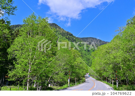 群馬県 片品村 菅沼付近の初夏 新緑の山並み 国道120号線