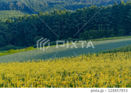 高原に広がるトウモロコシ畑(長野県信濃町)