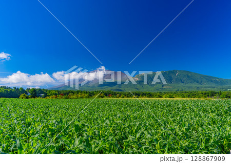 (群馬県)快晴下の嬬恋村トウモロコシ畑(後方に浅間山)