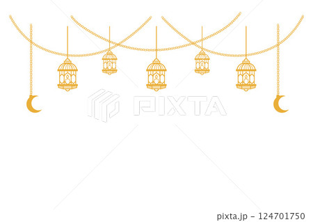 Gold lantern with crescent moon decoration background.