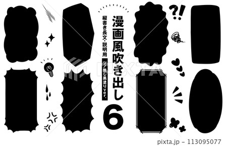 漫画風吹き出し6 縦書き長文・説明用(ツノ無し・黒塗りver.)