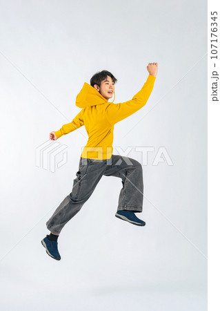 Little Boy Junping Enjoy Happiness Cheerful Studio Portrait