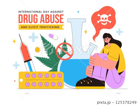 International Day Against Drug Abuse and Illicit Trafficking Vector Illustration with Anti Narcotics Awareness to Avoid Drugs and Harmful Medicines