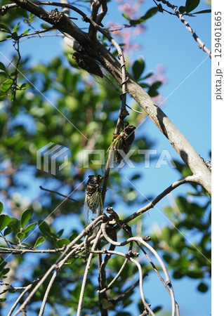 アメリカ テキサス州の公園で木にとまるオスのショウジョウコウカンチョウ(カーディナル)
